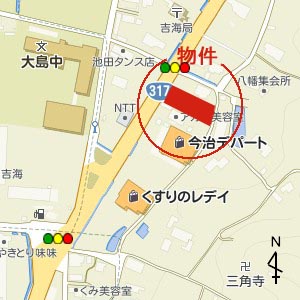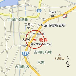 物件No.1435 吉海町八幡204-1、205-1 売土地2,210万円 最適用途:店舗用地 土地:宅地1044.66u(316坪) 交通:吉海支所バス停まで約240m 用途地域:都市計画区域外の無指定地域 環境:商業地域 地勢:平地 道路:(西)国道14m 給水:道路に上水道本管有 排水:道路に公共用下水本管有 電気:中国電力 ガス:プロパンガス 現況:空地 取引態様:仲介 2.7.26 町の中心部に位置する国道沿いの良い店舗用地です。