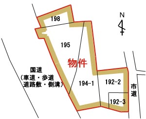 物件No.1499 吉海町名192-2、192-3、194-1、195、198 売土地 780万円 最適用途:店舗・事業用地 土地:宅地・田1293.39u(391坪) 交通:大黒バス停まで約80m 用途地域:都市計画区域外の無指定地域 地勢:平坦 道路:(東)市道3.9m、(西)国道14m 給水:市道に上水道本管有 排水:市道に公共下水本管有 電気:中国電力 ガス:プロパンガス 現況:空地 取引態様:仲介 6.10.25 国道沿いで、吉海町中心部近郊に位置する店舗・事業用地です。