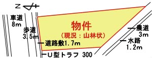 物件No.1505 吉海町幸新田399−1 売土地 270万円 最適用途:住宅・事業用地 山林:597u(180坪) 交通:水門バス停まで約150m 用途地域:都市計画区域外の無指定地域 環境:住宅地域 地勢:平坦 接道状況:(北)県道(車道8m、歩道3.5m) 給水:約55m先に上水道本管有り 排水:浄化槽を設置し、水路に放流 電気:中国電力 現況:山林状 取引態様:仲介 6.12.30 造船所方面への広い産業道路沿いです。