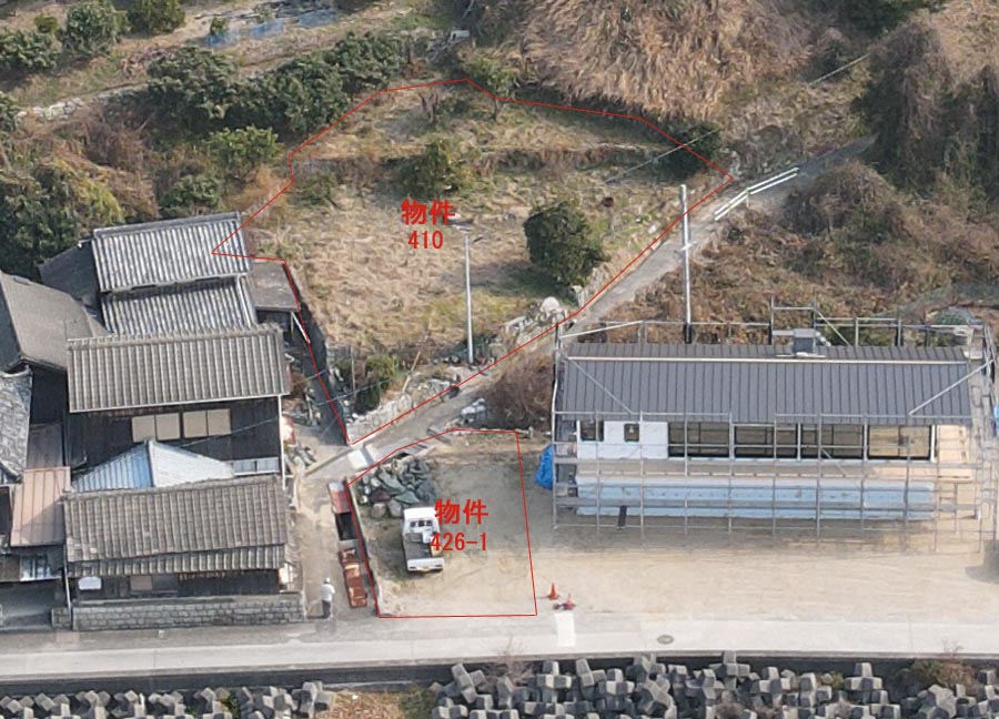 物件No.1506 吉海町田浦410、426-1 売土地 560万円 最適用途:保養所用地 土地:畑・宅地617.34u(186坪) 交通:田浦バス停まで約470m 都市計画区域:都市計画区域外 土砂災害:土砂災害警戒区域内 環境:リゾート地域 地勢:高台 接道状況:(西)県道3.7m 給水:県道に上水道本管有 排水:県道に公共用下水本管有 電気:中国電力 現況:緩やかな休耕地 取引態様:仲介 日当たり良好で長閑な環境の保養所用地です。 浜辺では海水浴・魚釣りが楽しめます。 土砂災害警戒区域内では、土砂災害のことを知り、いざという時の心構えをしておく事が必要です。