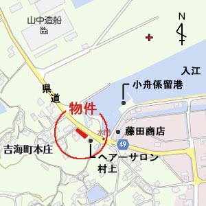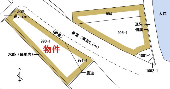 物件No.1509 吉海町本庄990-1、991-1 売土地 400万円 最適用途:店舗用地・住宅用地 土地:畑655u(198坪) 交通:水門バス停まで約100m 用途地域:都市計画区域外の無指定地域 土砂災害:土砂災害警戒区域内 環境:住宅地域 地勢:平地 接道状況:(北東)県道、(北西)市道3.2m 給水:上水道引込済 排水:公共用下水引込済 電気:中国電力 現況:休耕地 取引態様:仲介 7.4.18 県道沿いで道路事情が良く、日当たり良好なので店舗用地・住宅用地に最適です。土砂災害警戒区域内では、土砂災害の事を知り、いざという時の心構えをしておく事が必要。