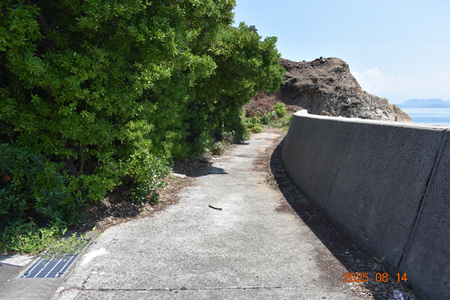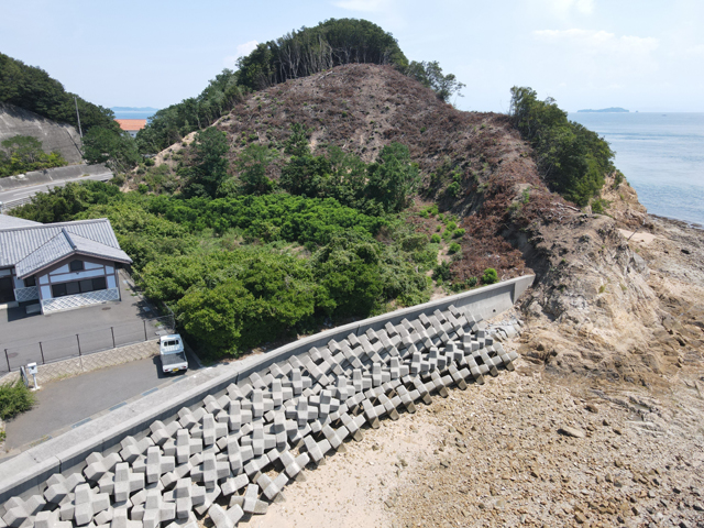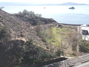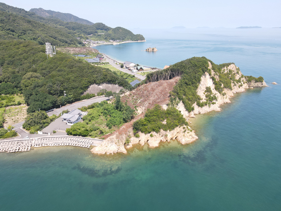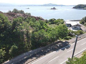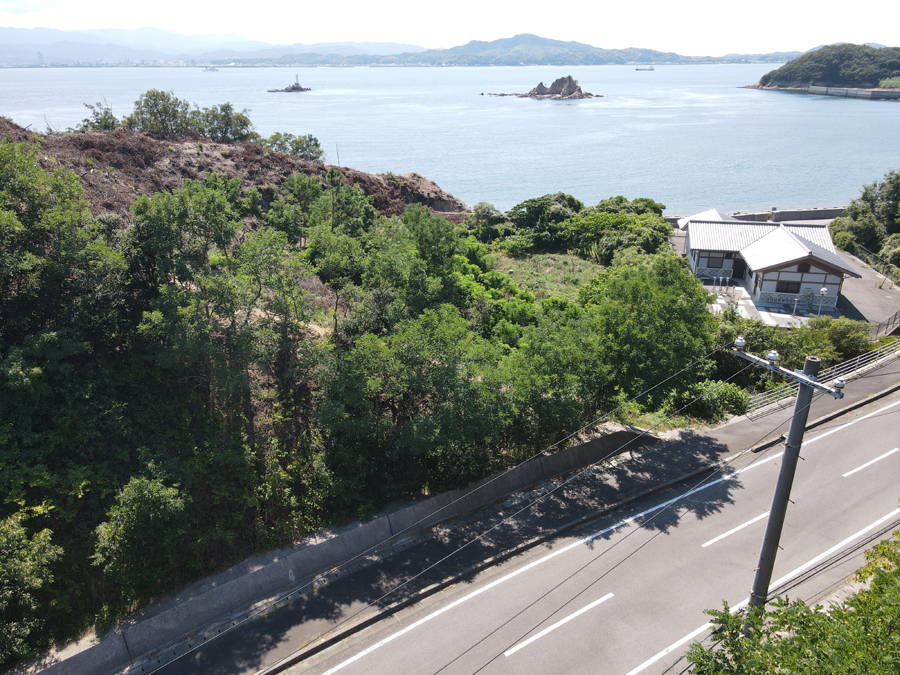 海端で静かな環境。西南方向には燧灘海峡が広がり、遠くに今治市街地を望む景観です。
